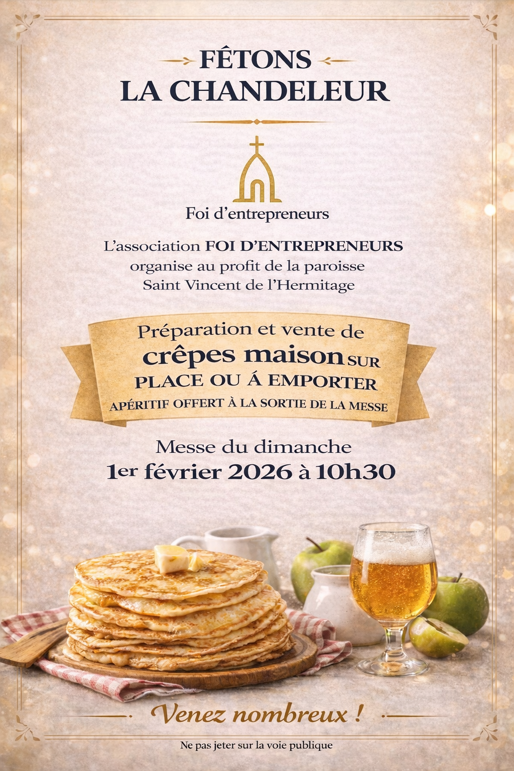 "La paroisse Saint Vincent de l'Hermitage est une communauté accueillante. Que vous soyez simplement de passage ou présent dans la région depuis longtemps, que vous soyez pratiquant convaincu ou simplement en quête de sens dans votre vie, vous êtes les bienvenus ! Nous voulons, dans la joie et la simplicité, vous partager le trésor que nous avons reçu, l’amour immense de Dieu pour tous. Alors n’hésitez pas à venir nous rencontrer, nous sommes impatients de faire votre connaissance."